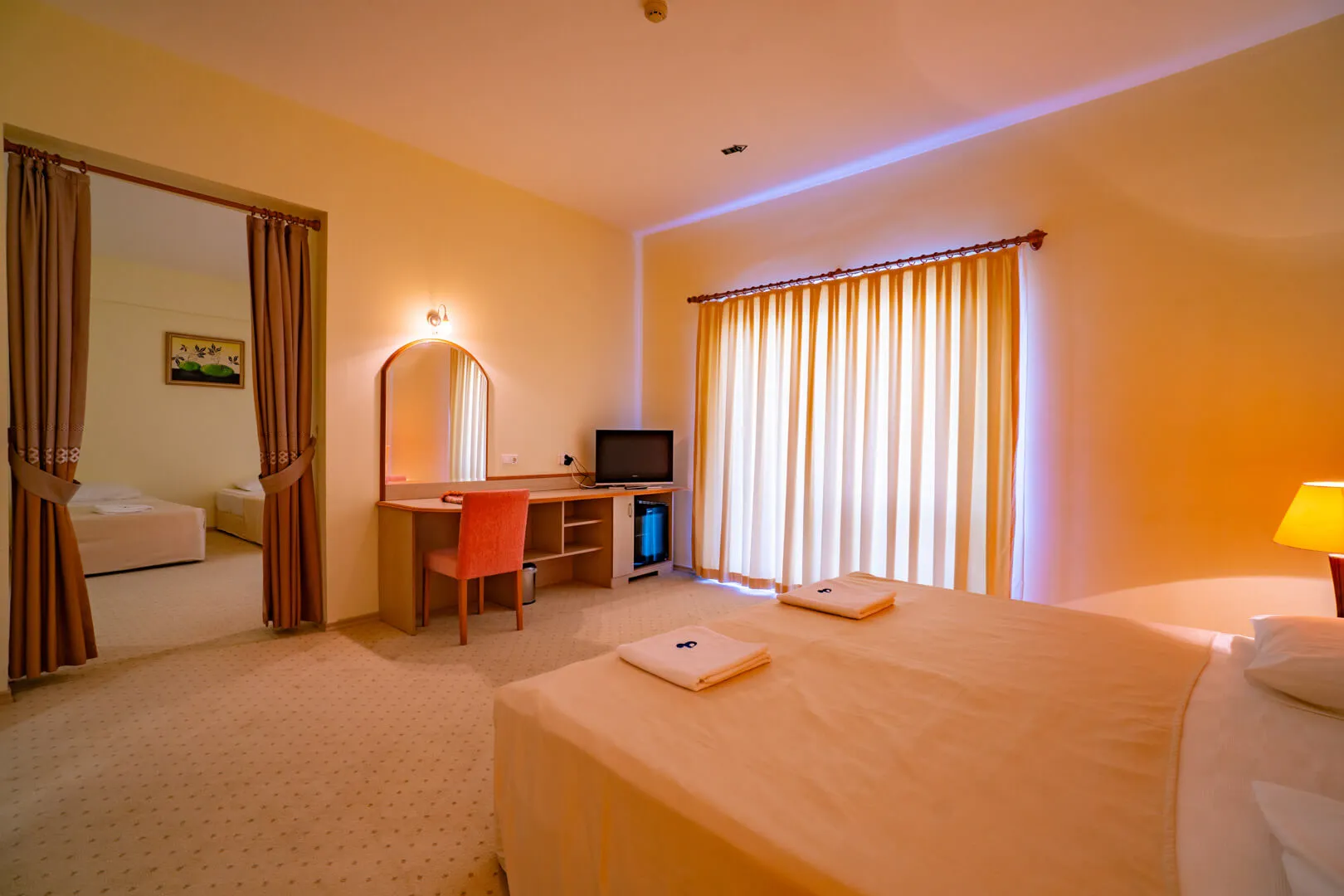 Kısmi deniz manzaralı geniş odalarımız 61 M² ve Ebeveynodası - Çocuk odası -Banyo’dan oluşmaktadır. Oda hakim cephesi orman manzaralı olup, deniz manzarası kısmi dir.